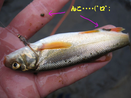 | 3月1日 午前5:30 今回は、親戚・ご近所・一族郎党のどなたにもお亡くなりになってもらわず、正々堂々・・・・?と有給休暇を取得したAstrum。 4時間ほどの眠れない夜を悶々とやりすごして、車の後部座席に乗り込みました。 運転しているのはモモ兄ちゃん。そしてサイドシートにはマネちゃん。 そうです。 待ちに待った解禁日。 茨城より1ヵ月早く解禁する栃木の渓流に向かいました。 夜半に降り出した小雨が、フロントガラスを霧吹きのように曇らせます。 「天気予報では、降水量は1ミリ〜2ミリとなってたね〜ぇ。。。」とAstrum。 フロントガラスに当たった雨粒に、なぜかマネちゃんがメジャーを出してきて大きさを測ってます。 「直径8ミリくらいはあるよーぉ!!」(`_´メ)プンプン ありッ???? 降水量って、落ちてきた雨粒の直径を測定して数値化するんだったっけ〜ぇ。。。(・_・;)? いつもの事ながら、期待と不安に加えて雨模様の天気も手伝って、みんなしてやたらテンションが上がってます。車中では大爆笑の連続。 しかし。。。。 目指す川に降り立った途端、あ、あ、あ、アメが・・・・(;_;) メゲずにウェイダーを着込んで出撃しました。 ウェイディングシューズを取り出すと・・・・・。 ![]() ![]() こんなカンジのダダッ広い川です。 ↑ 下流側 上流側 ↑ Astrumは下流に、モモ兄ちゃんとマネちゃんは上流に向かいます。 ・・・・・・。で、2時間後。。。。 つれまへ〜ん!! 時折雨脚が強くなる中、ドライフライをビシバシ打ち込むこと何百回!! レインコート兼用防寒着は、ヌレヌレ・ビショビショ・ジュクジュクのヌルヌル。。。。 ・・・・・・チョッとーぉ、な〜んか表現がヤラシくなぁ〜い???? モモ兄ちゃんとマネちゃんに追いつき釣果を訊くと、モモ兄ちゃんはウェットフライで23cmのヤマメを筆頭に5匹(注:みんなの嫌われモノのアレを含む。。。)とのこと。。。 うらやまぴーぃ!! その直後!! マネちゃんのドライフライにヒーット!! が、しかし・・・・・・(・_・;) なんかソレ、模様がナイみたい。。。 ![]() 怒ったマネちゃん、ワサビ醤油でひと飲みの体勢・・・美味しいのかなぁ。。。? で、ウェットで釣れた話を聞いたAstrumは、チャッかりビーズヘッドニンフのウキ釣りに変更してたりします。 ![]() こんな堰堤の流れ出しで、ソノ瞬間はやってきました。 落ち込みの流れに揉まれてウキが水中を流れていく中、オレンジ色のウキが一瞬だけツツーッと上流側に引っ張られました。 すかさずロッドをアオッたら・・・・・。。。。 やったーぁ!! ヤマメです〜ぅ〜ぅ。。。 今年のイッパツめは、史上初・正真正銘・まぎれもないヤマメ!! ![]() なんと嬉しい1匹目なのでしょう。 思わず歌っちゃいましたよ!! ♪♪♪ ひゃっくまんかいの愛してるなんかよりも ずっとずっと大切にするものがある オレは何も言わずにだきっしめるからっ オマエはオレの腕の中で幸せなヤマメになっれ〜 ♪♪♪ (Aqua Timez ‘等身大のラブソング’改) という間にお昼が過ぎ、場所を替えて再びアタックすることになりました。 ![]() モモ兄ちゃんは、午前中の5匹で満足して、車の中で高イビキ状態。 マネちゃんと2人で果敢に釣りあがります。 そして、入渓してすぐの沈み石の切れ間で、再びソノ瞬間はやってきました。 よっしゃ〜ぁ〜ぁ〜!! 2匹目です〜ぅ〜ぅ。。。\(^o^)/ あれッ???? もっ、もっ、模様がないんです〜ぅ〜ぅ。。。(泣) 思わず歌っちゃうことは・・・・・やっぱ無かったダス〜ぅ。 なんかワサビ醤油で食われるのかと思ったらしいウグイ君、ビビッちゃって「ンコ」おもらししてたりします。 ![]() 見事にスレてるし・・・・・。 「オメーよーぉ、オレはマネちゃんと違って食わへんから、そのンコもらすのヤメーぇ!!」 今シーズンも、やはり彼らとは強い絆で結ばれているAstrumだったのでした。。。(..;) その後も降り続く雨の中を釣り上がったものの、一度たりともアタリは無く、マネちゃんと二人してあえなく撃沈。。。 それにしてもこの雨の中、茨城ヘタレ隊の大食いペアのマネちゃんとAstrum、よくもまぁヘタレずに釣り上がったモンです。 ![]() こんな、川を横断する道があったりします。それに吊り橋…高所恐怖症のAstrumは、チョッとニガテ。。。 自宅に帰ってきたAstrum。 時計を見ると午後9:00。 せっかくの有給休暇の1日がまだ3時間も残ってます。 それに、ナーンとなくフラストレーションが溜まってるような気分です。 ってことで、Astrumは、ネオンきらめく中心街の最近見つけたお気に入りのお店に向けてハンドルを切ったのでした。 あれッ??? 今回は、モモ兄ちゃんの写真がなかったなーぁ・・・・・。 仕方がない。 代わりにAstrumのお気に入りのお店の「桃ちゃん」の写真でも入れとくか。。。σ(^_^)ン? ![]()